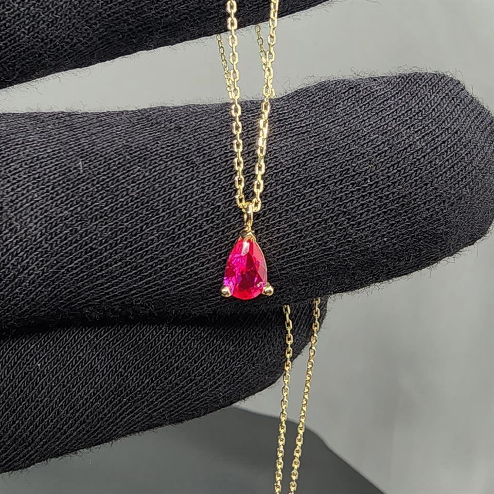 0.25 Karat Ruby Pırlanta Montürü Nano Has Taşlı Hediye 14 Ayar Altın Kolye