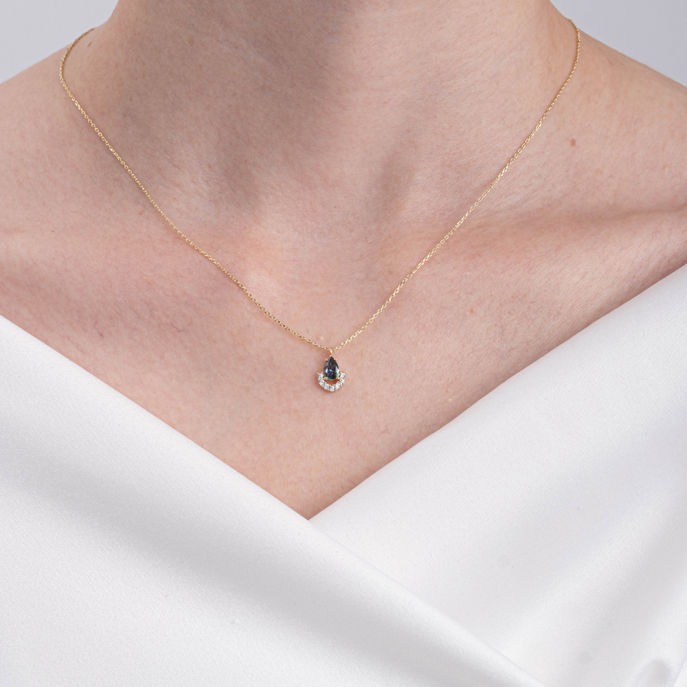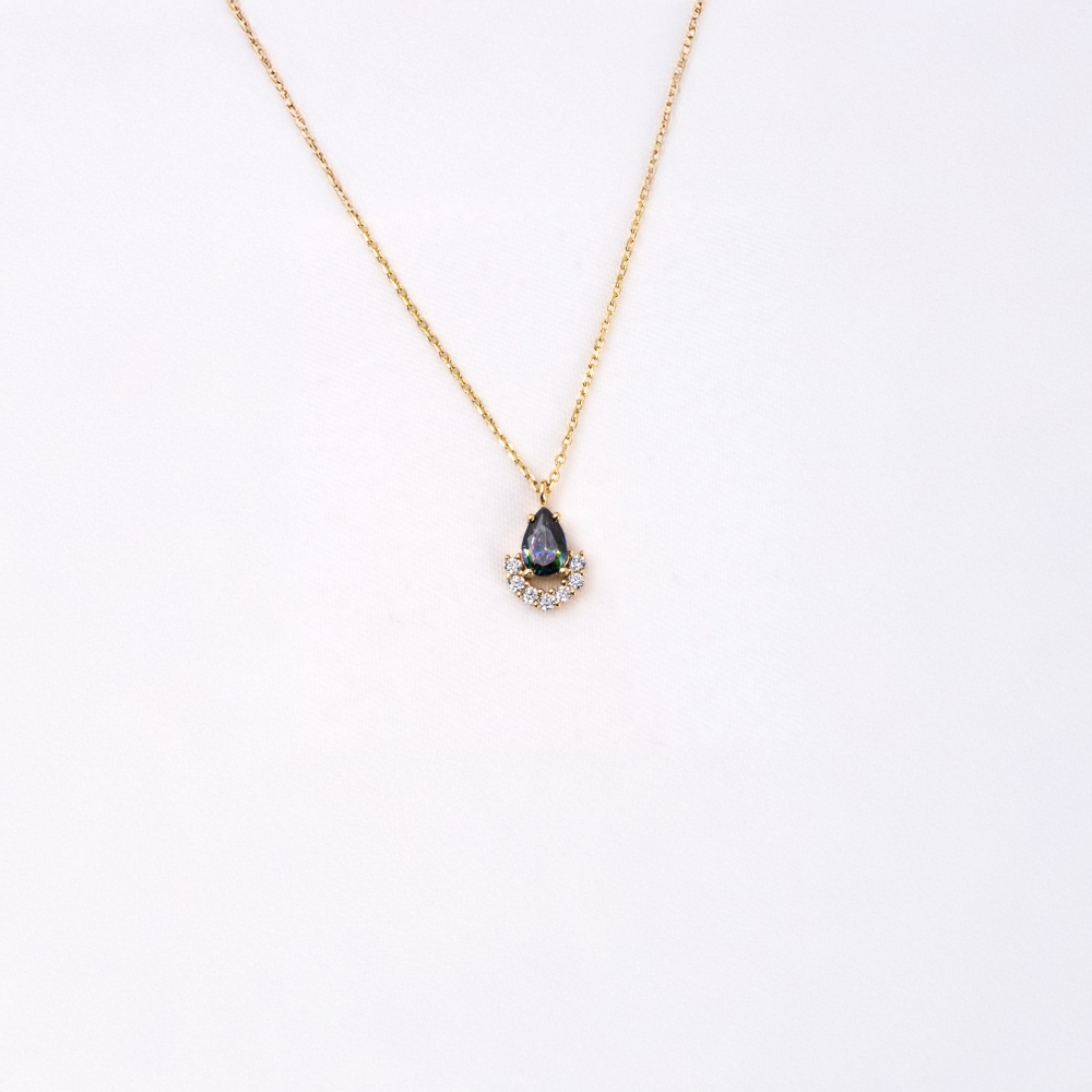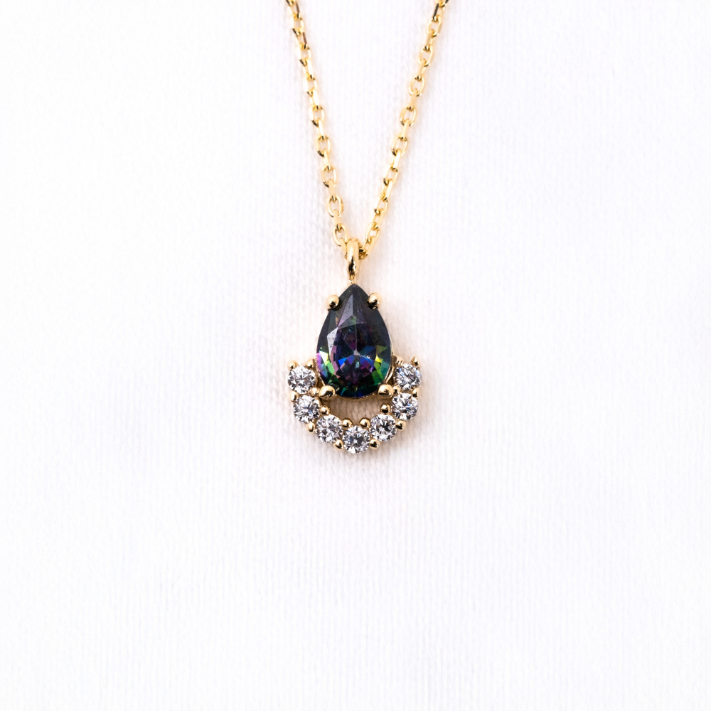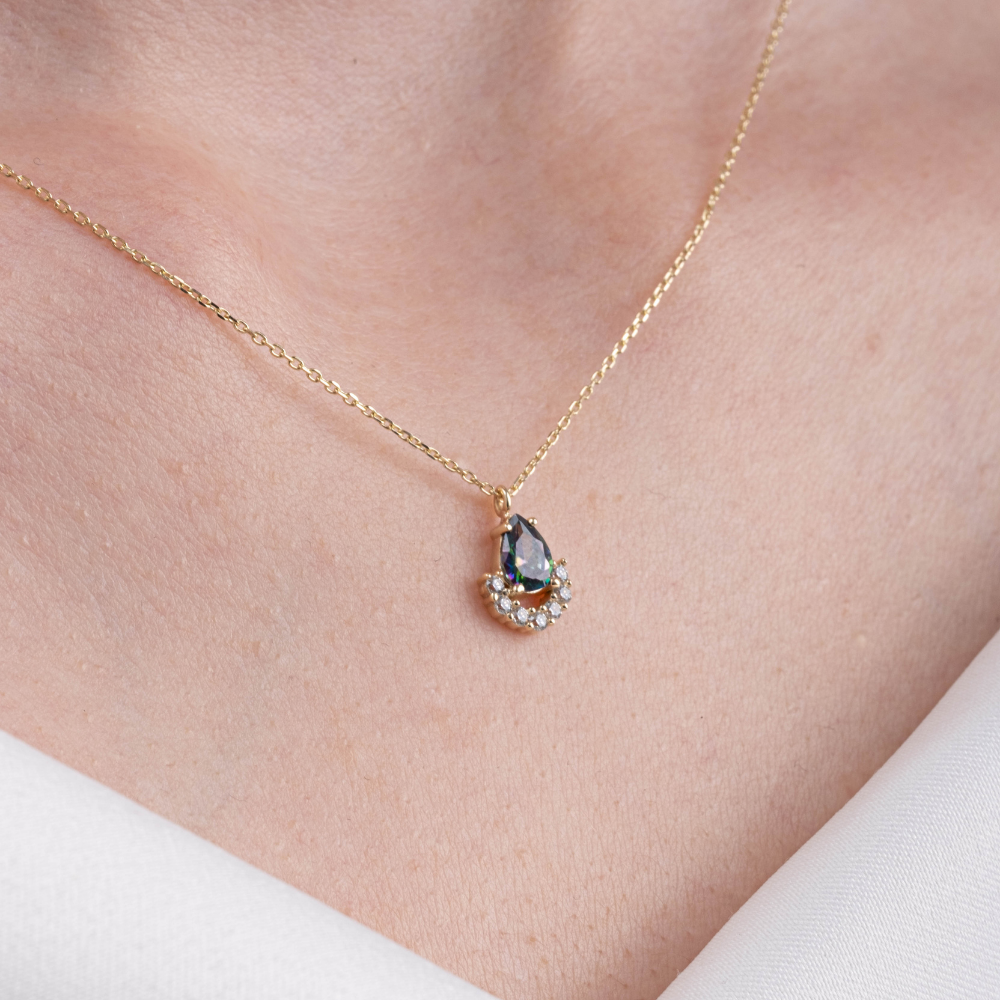 0.50 Karat Mistik Topaz 0.25 Pırlanta Montürü Damla Ay Tasarım Doğal Taşlı 14 Ayar Altın Kolye