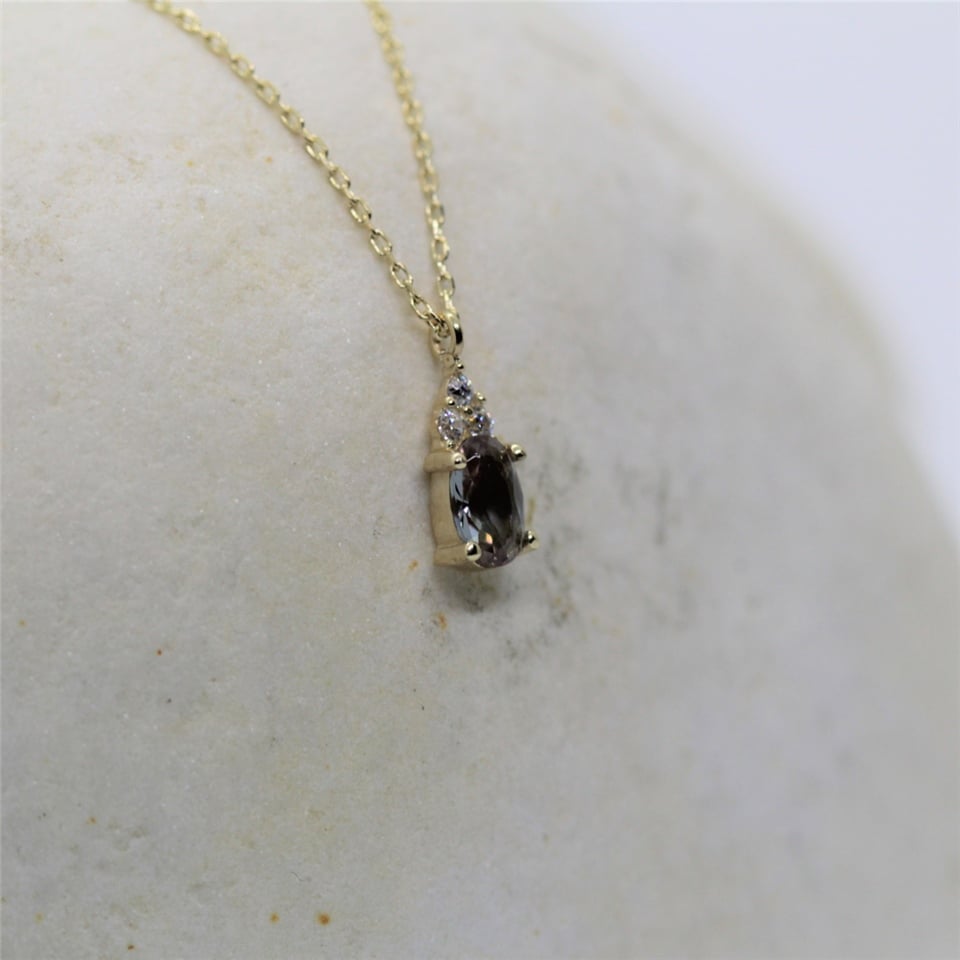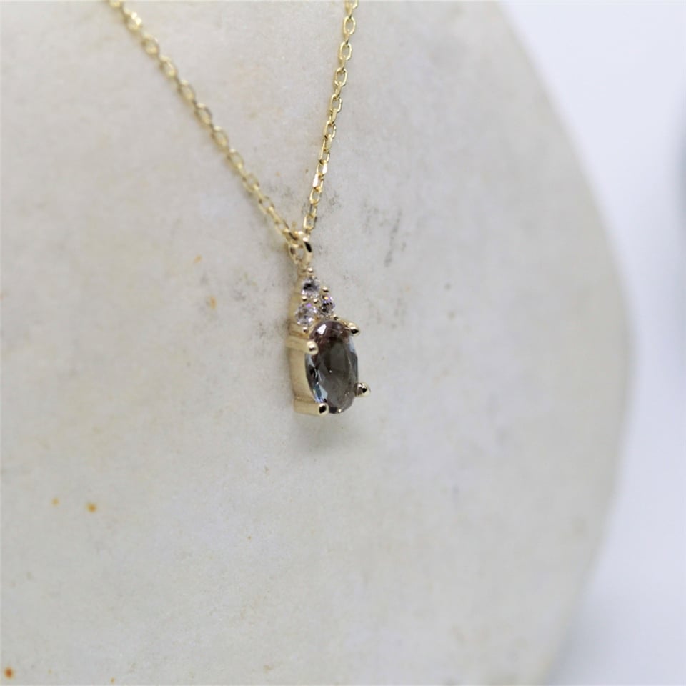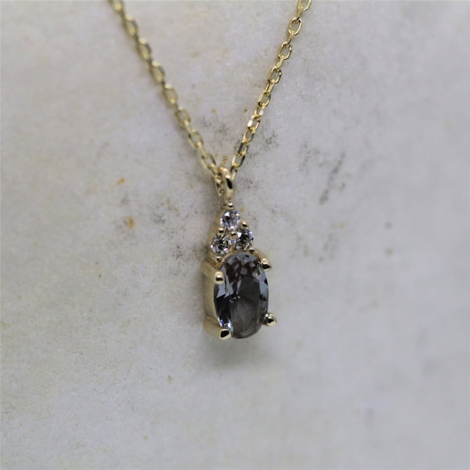 0,60 CT Zultanit 0,10 CT Pırlanta(Sıgnty) Taşlı Modern Tasarım Altın Kolye-14 Ayar Hediye Altın Kolye