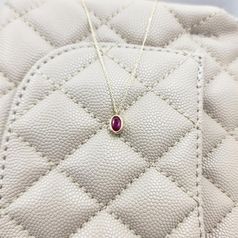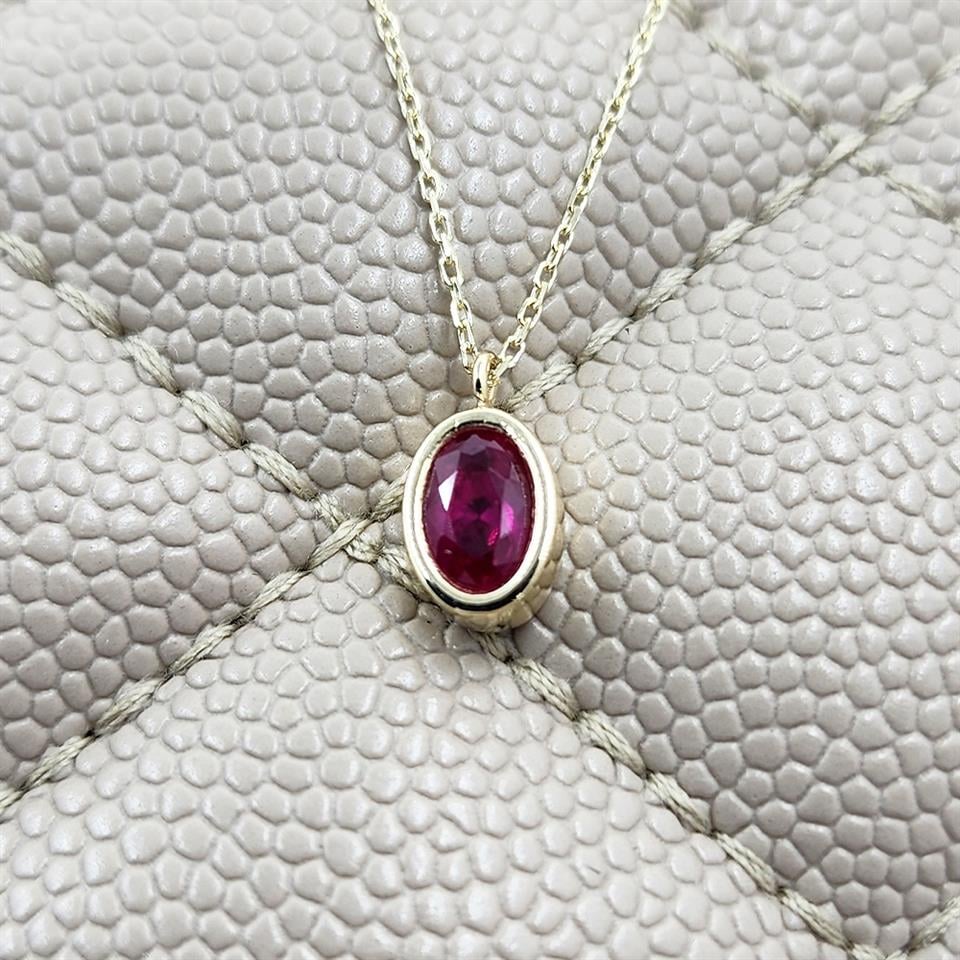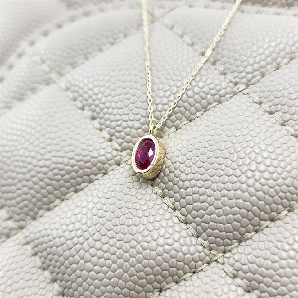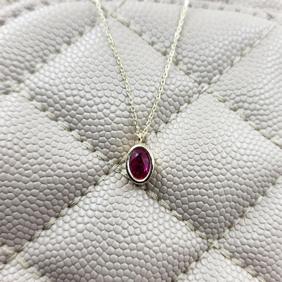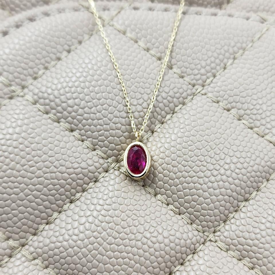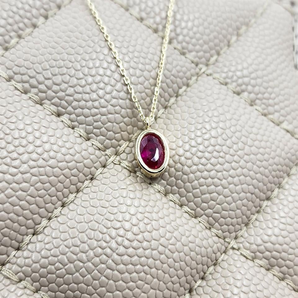 1.05 Karat Ruby Taşlı Tasarım Modern Altın Kolye-Ruby Taşlı Tasarım Hediye 14 Ayar Altın Kolye