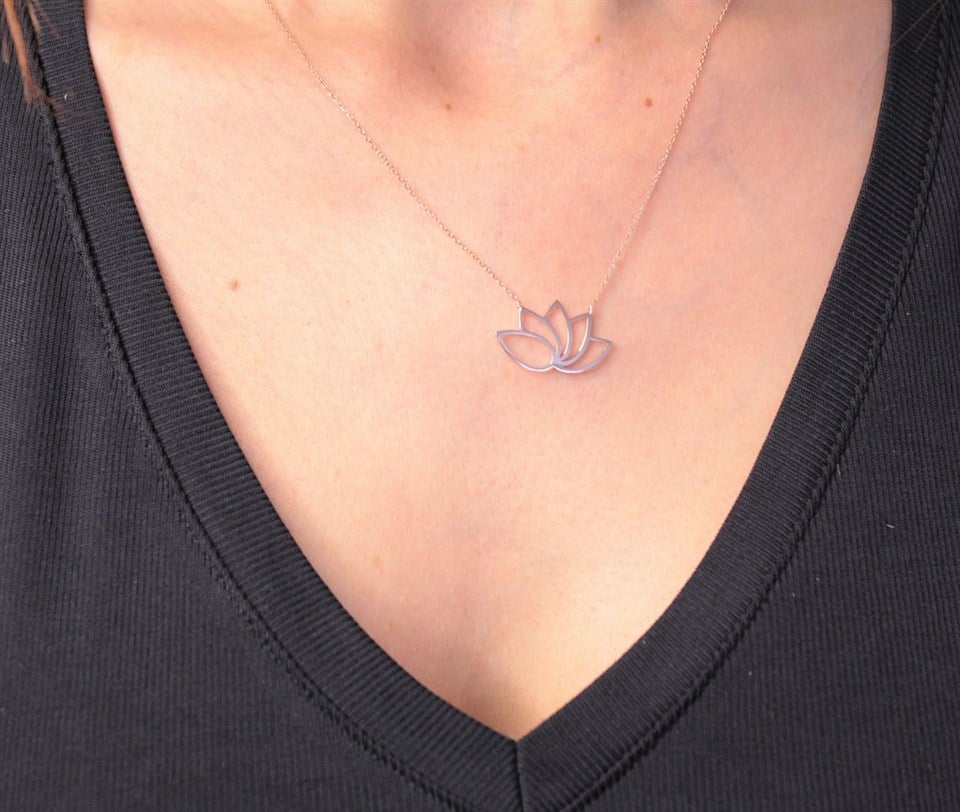 14 Ayar Altın Kolye-Lotus Çiceği Uğur Kolyesi-Hediye Lotus Çiçeği Altın Kolye