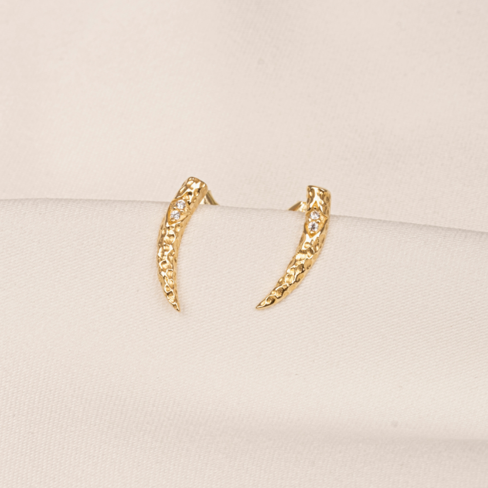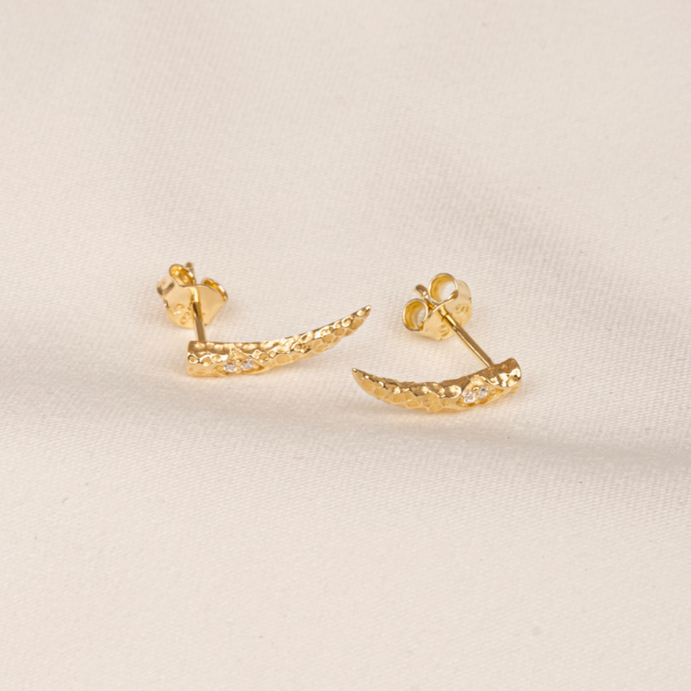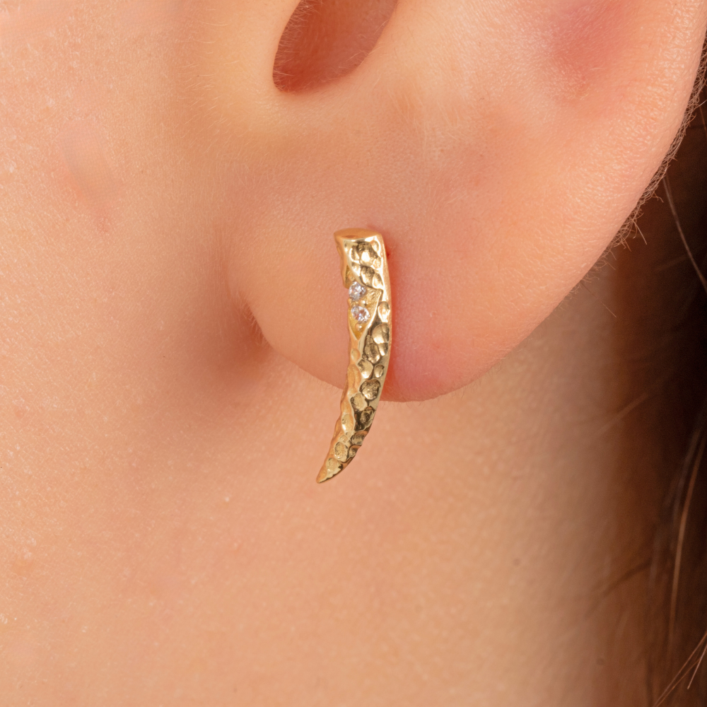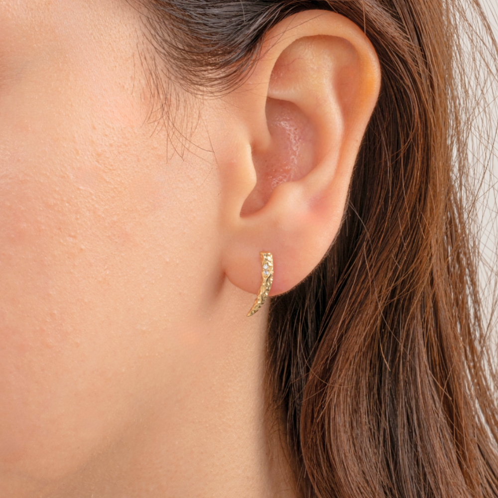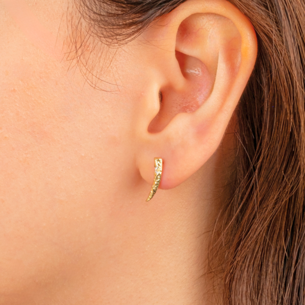 14 Ayar Altın Minimal Taşlı Dövülü Küpe