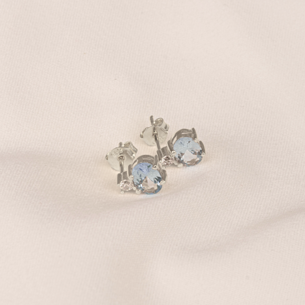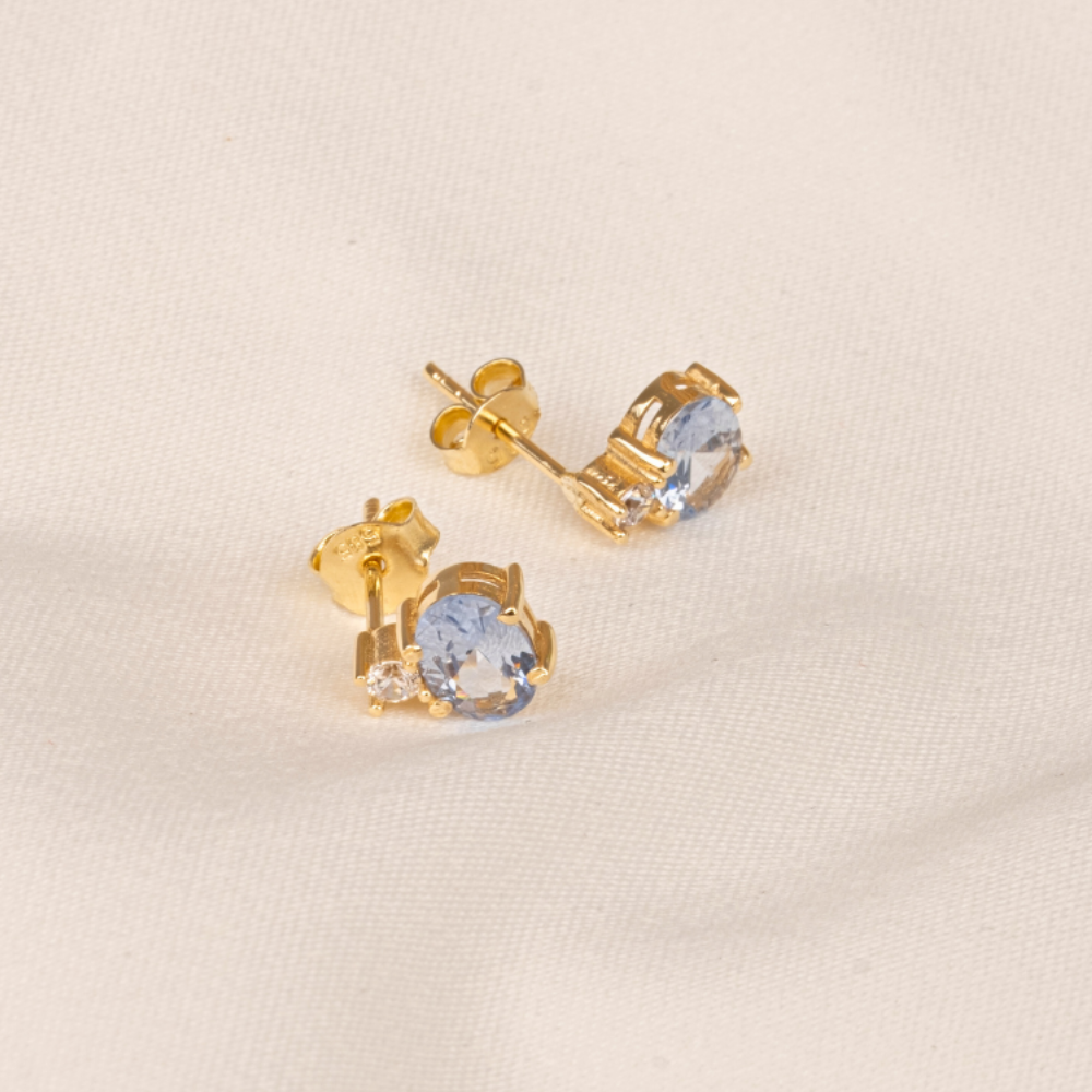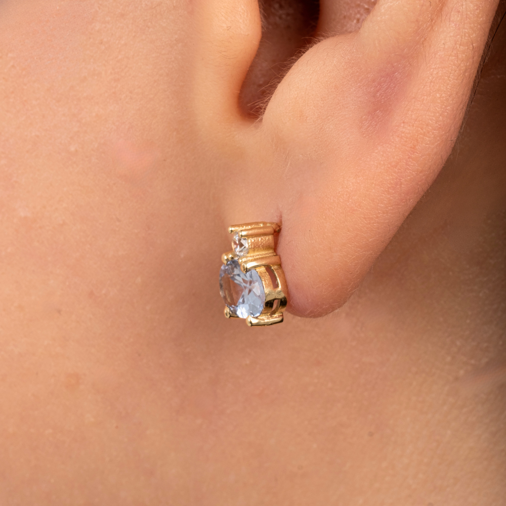 14 Ayar Altın Oval Blue Topaz Taşlı Tektaş Küpe