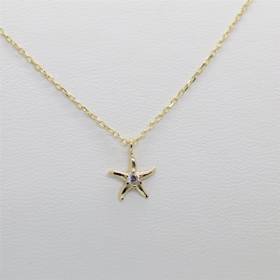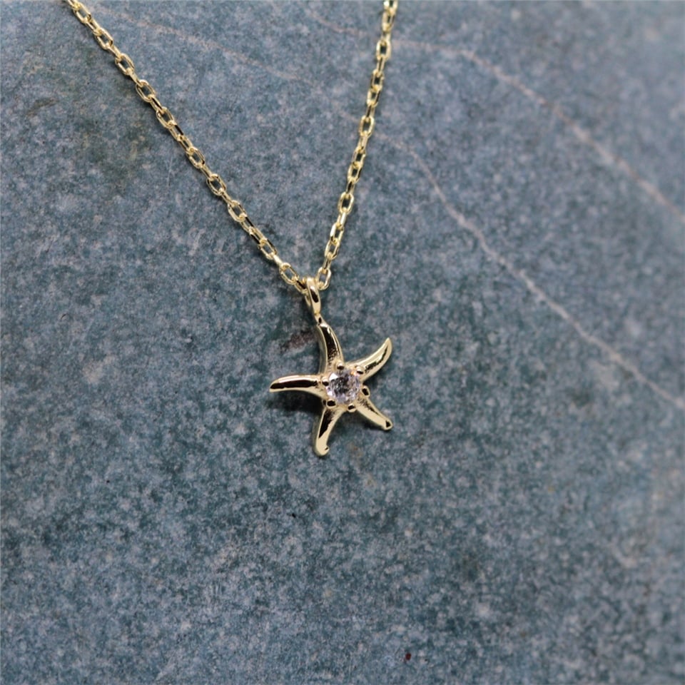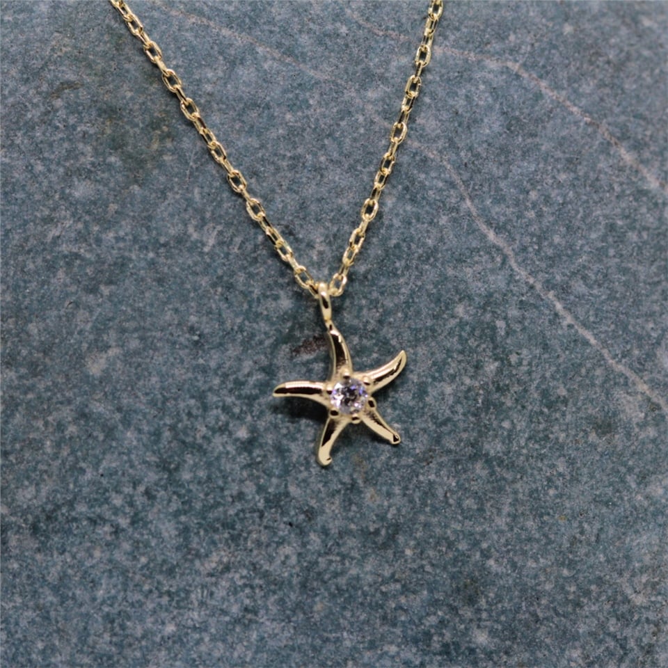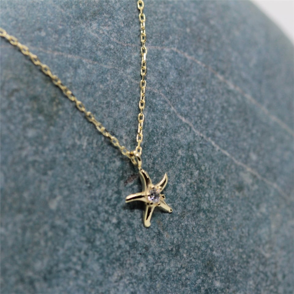 Deniz Yıldızı Pırlanta (Sıgnty) Taşlı Tasarım Minimal Tarz Altın 14 Ayar Kolye-Hediye Altın Kolye