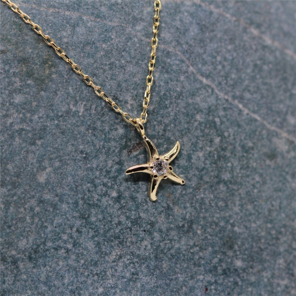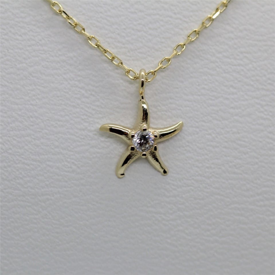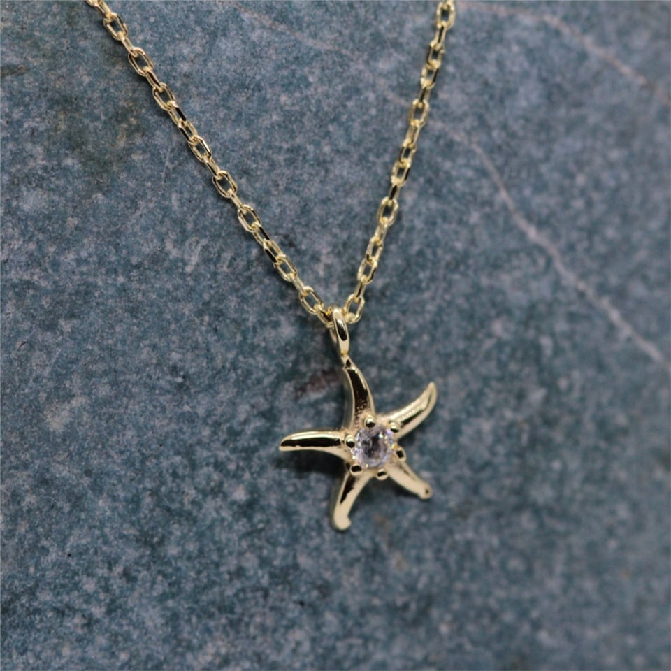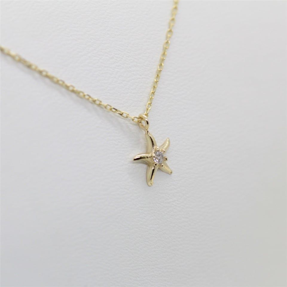 Deniz Yıldızı Pırlanta (Sıgnty) Taşlı Tasarım Minimal Tarz Altın 14 Ayar Kolye-Hediye Altın Kolye