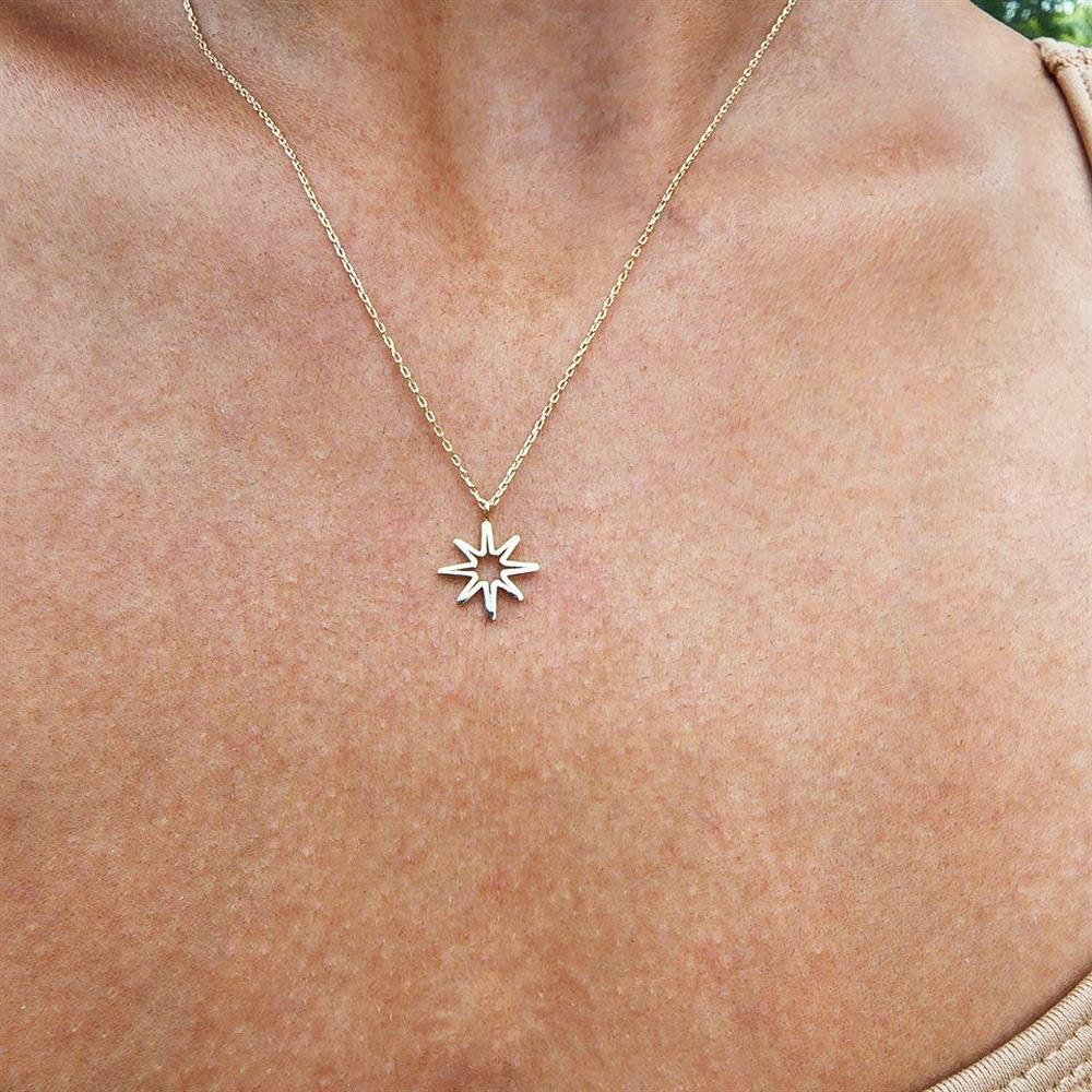 Güneş Tasarım Sade Taşsız Tasarım Modern Gündelik Hediye Taşsız 14 Ayar Altın Kolye-Güvercin Kolye