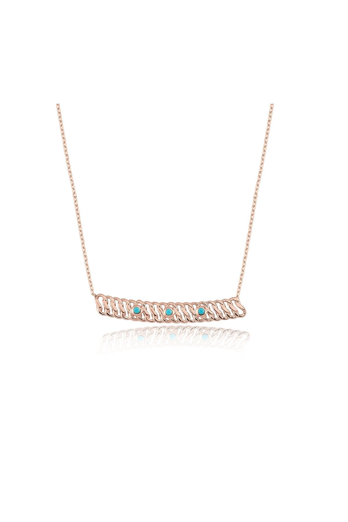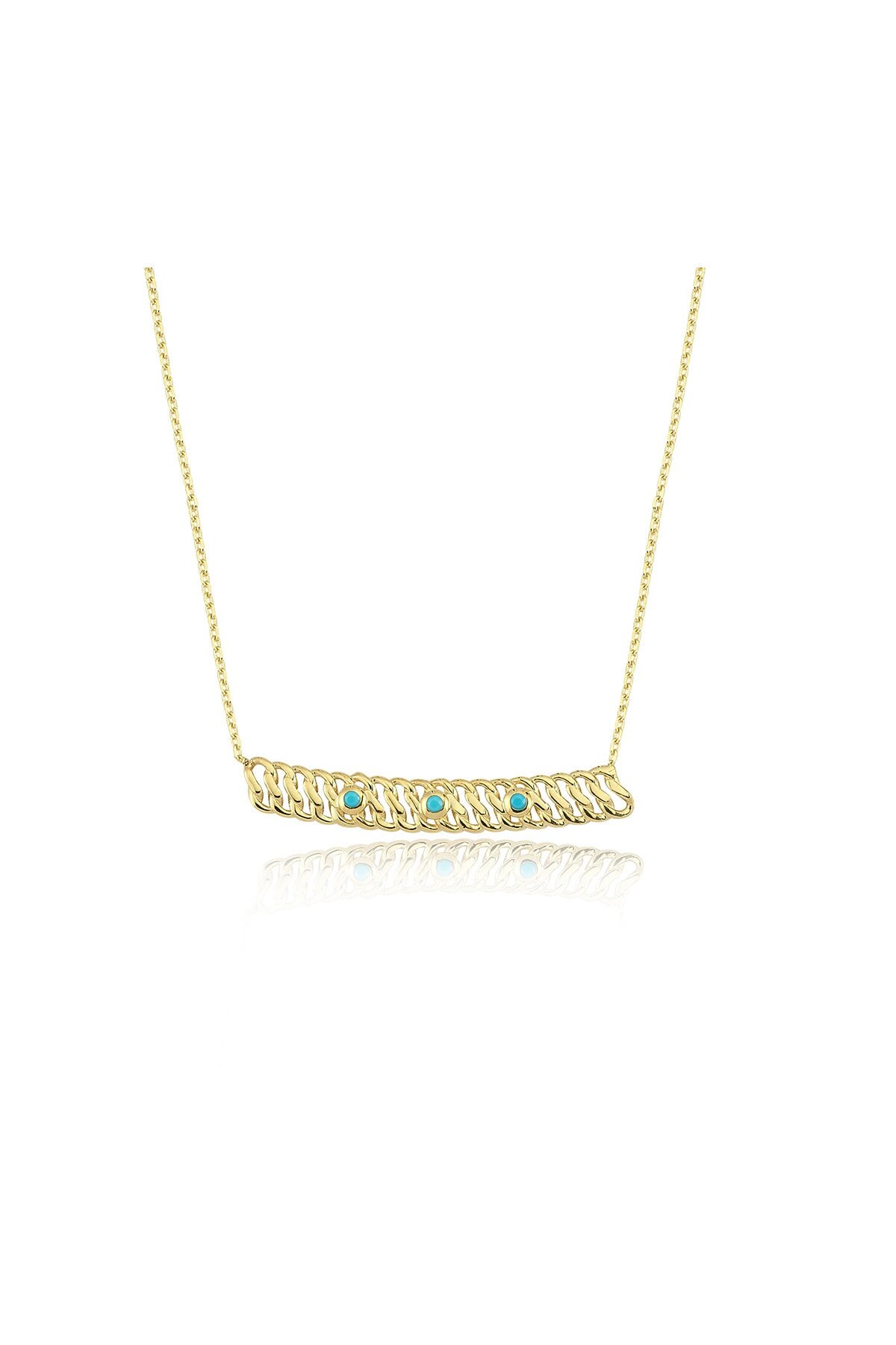 Mini Firuzeli Şerit Örgü Altın Kolye