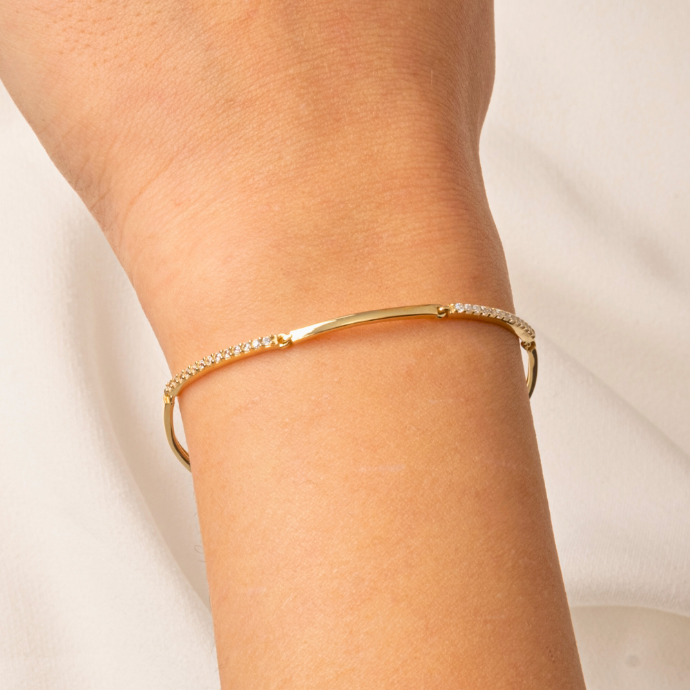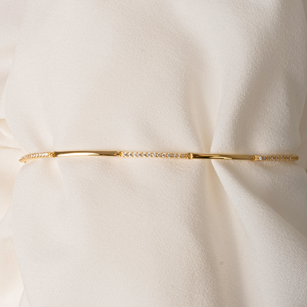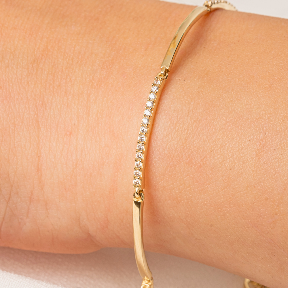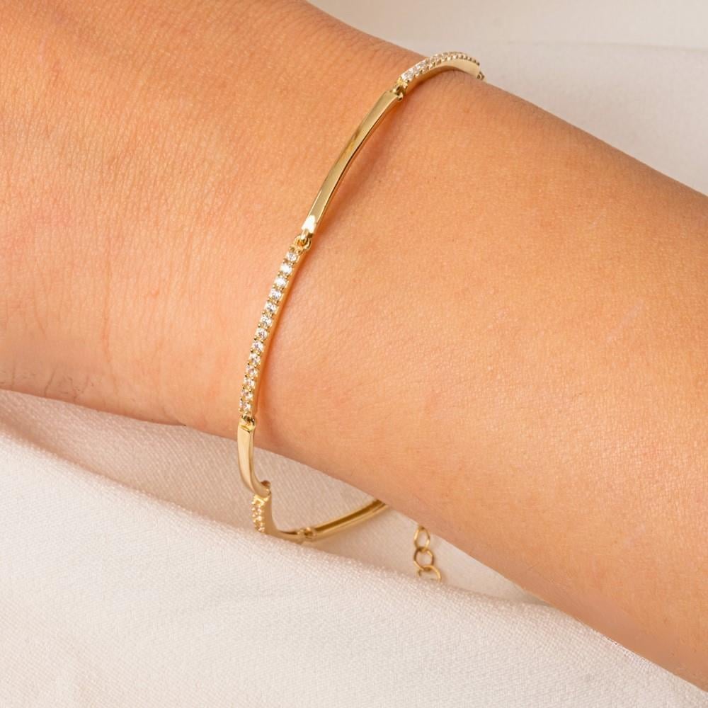 Sıra Taşlı Modern Tasarım Şık 14 Ayar Altın Bileklik