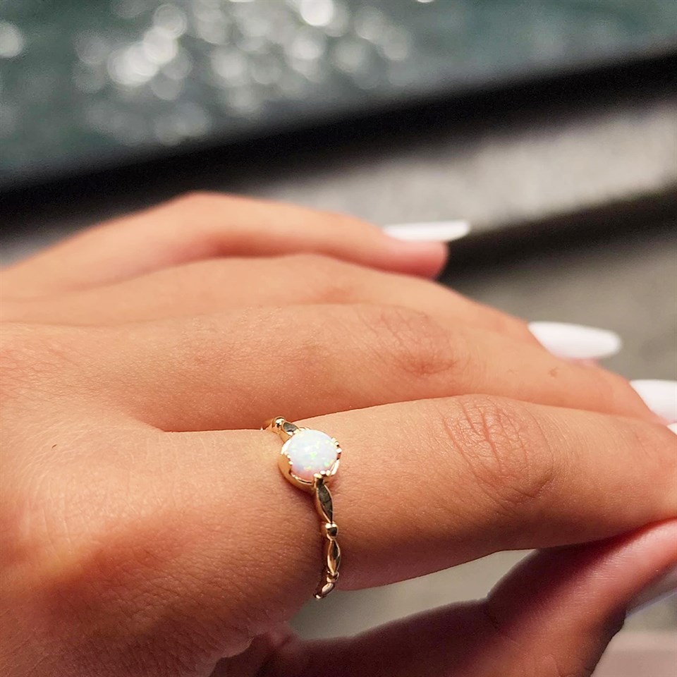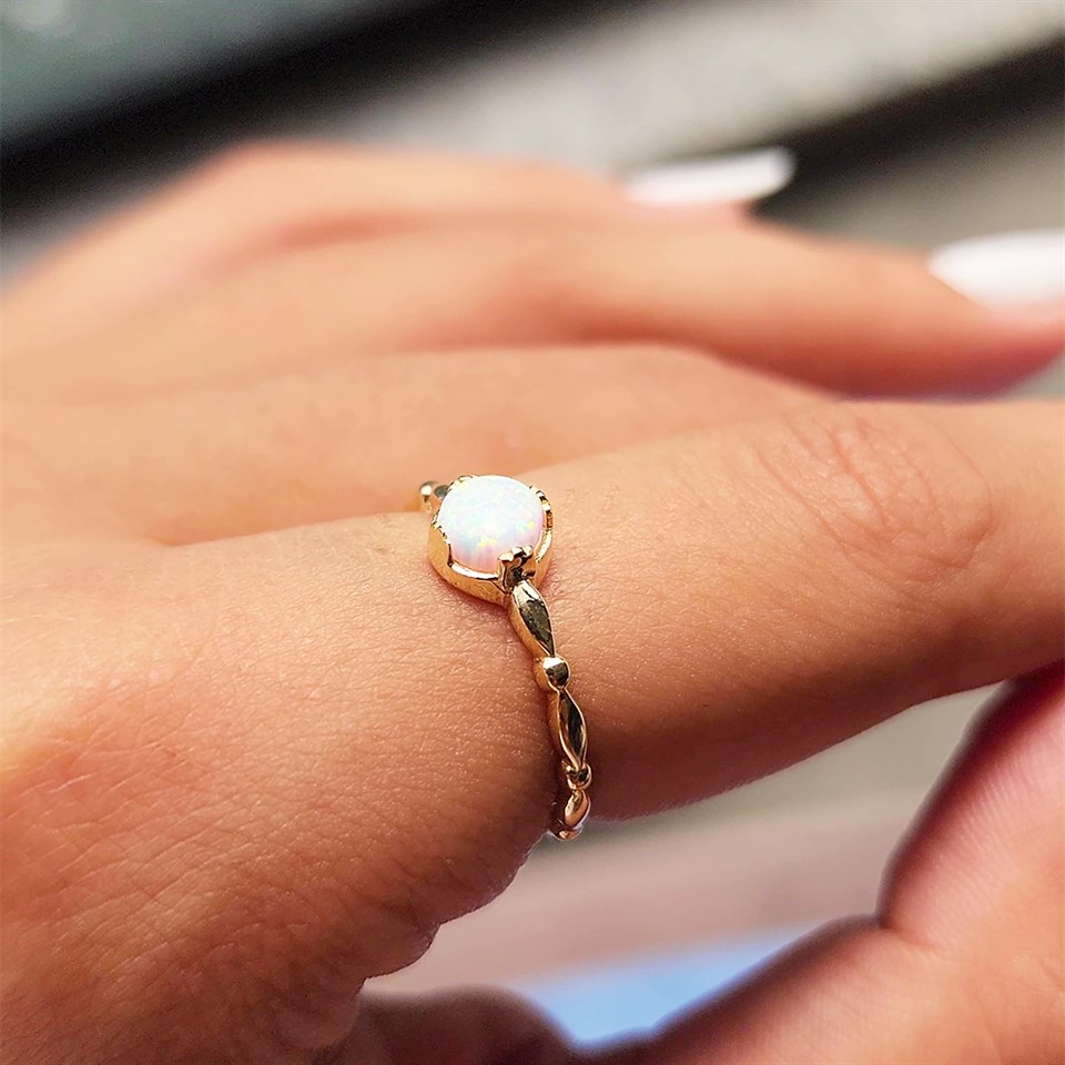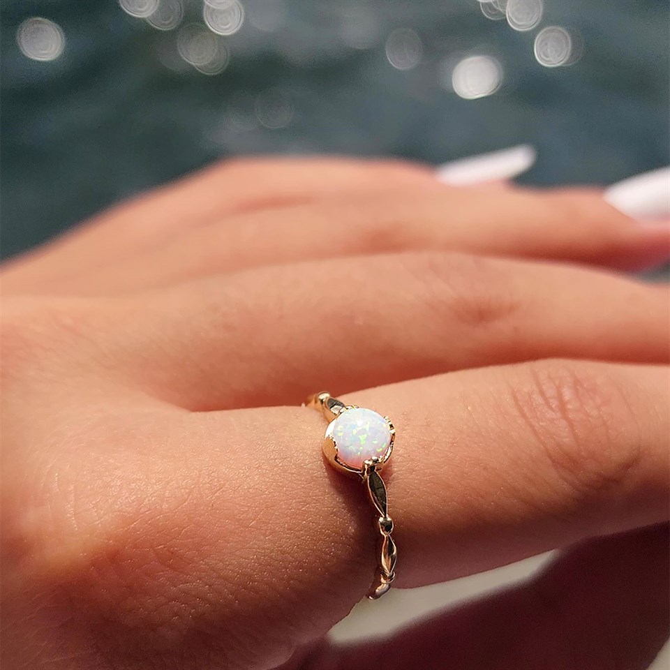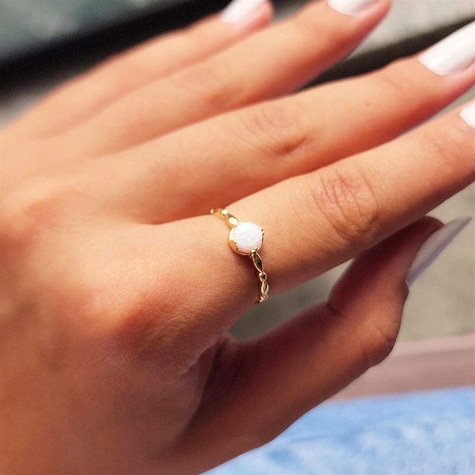 Opal Taşlı Modern 925 Ayar Gümüş Tek Taş Evlilik Teklifi Yüzüğü